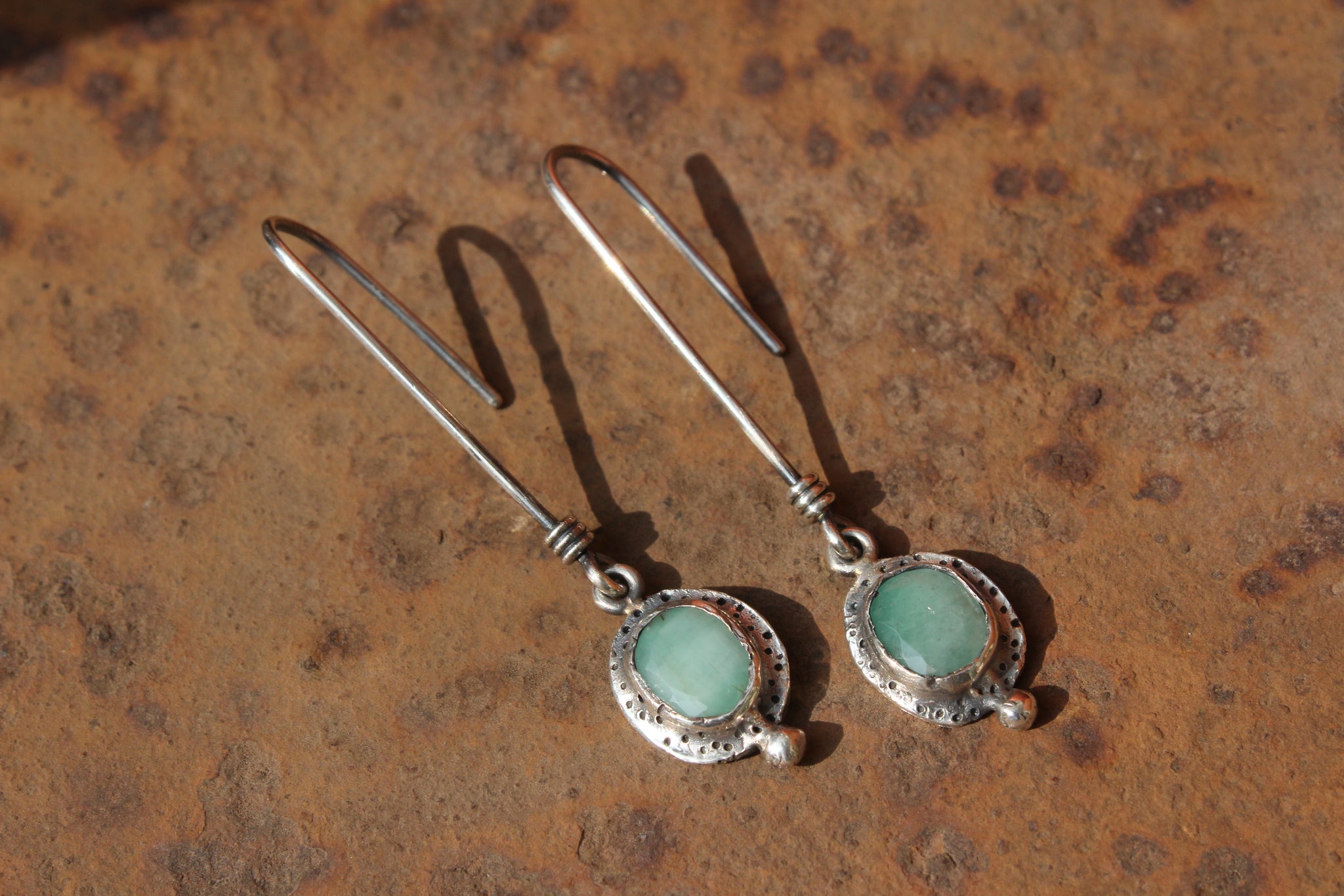 Aretes artesanales de plata .925 con Esmeraldas.